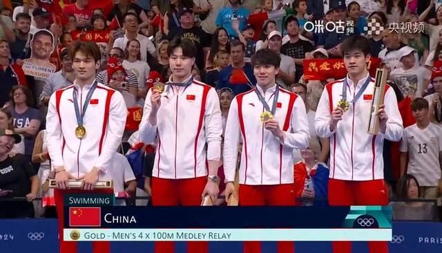 从左至右分别为:中国游泳运动员徐嘉余、覃海洋、孙佳俊、潘展乐