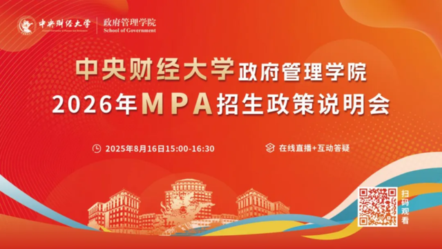预告丨中央财经大学政府管理学院2026年MPA招生政策说明会即将举行
