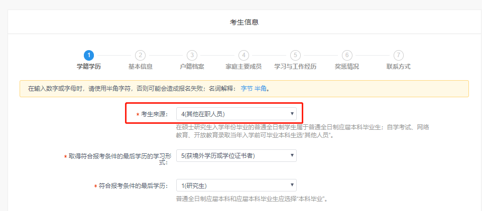 硕士研究生招生考试报名包括网上报名和网上确认(现场确认)两个阶段。