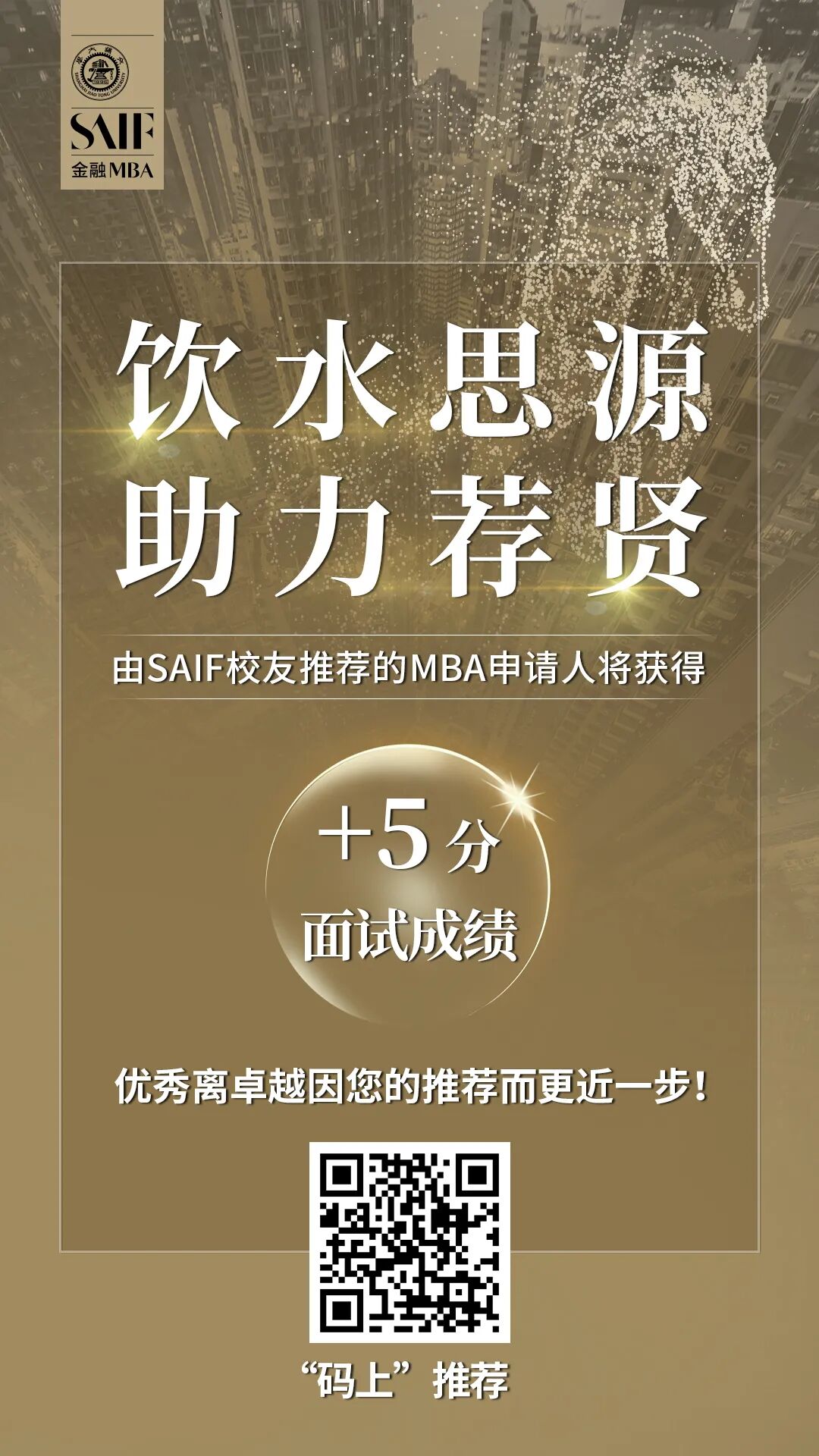 今年,高金金融MBA项目特设【助力荐贤】回馈礼,以感谢SAIFer一直以来对学院和FMBA项目人才选拔的支持。