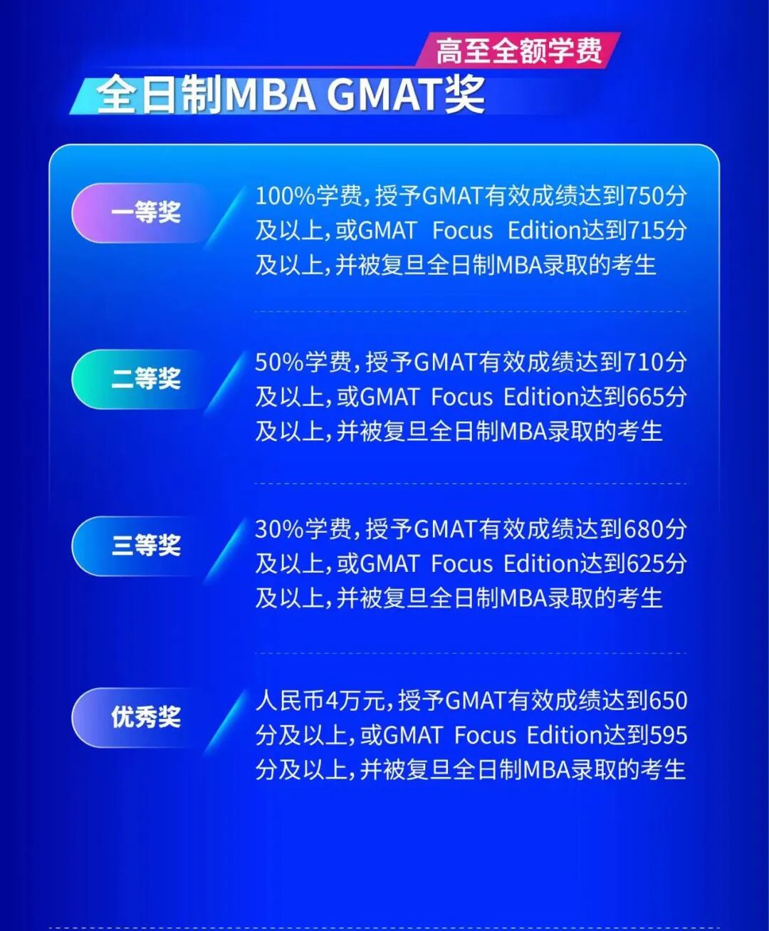 祝每一位考生都能取得自己满意的成绩,申请到复旦GMAT奖学金!期待在复旦见到大家!