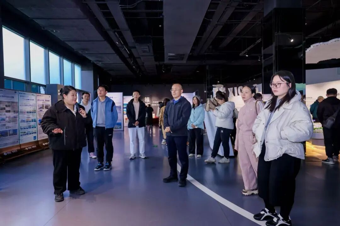 第一站是雄安新区的启动区综合服务中心。这里不仅是外界了解启动区规划的重要门户,更是许多疏解单位到雄安考察的“第一站”。中心内,一个巨大的城市沙盘格外引人注目,它将启动区38平方公里的规划蓝图浓缩于方寸之间。同学们俯身细看,在讲解员的指引下,金融岛、总部商务区、互联网产业园等片区的功能定位与建设进展一目了然。更令人印象深刻的是,数字孪生技术将虚拟城市与现实基础设施实时联动,动态演绎着智能交通调度等城市治理场景,让“未来之城”的运转模式变得清晰直观。工作人员详细讲解到,支撑这座数字孪生城市运行的,是雄安城市计算中心这一强大的“智慧中枢”。参访中,智能基建与前瞻设计不仅展示出“妙不可言”的科技魅力,更打开了未来就业与产业创新的想象空间,令人“心向往之”。