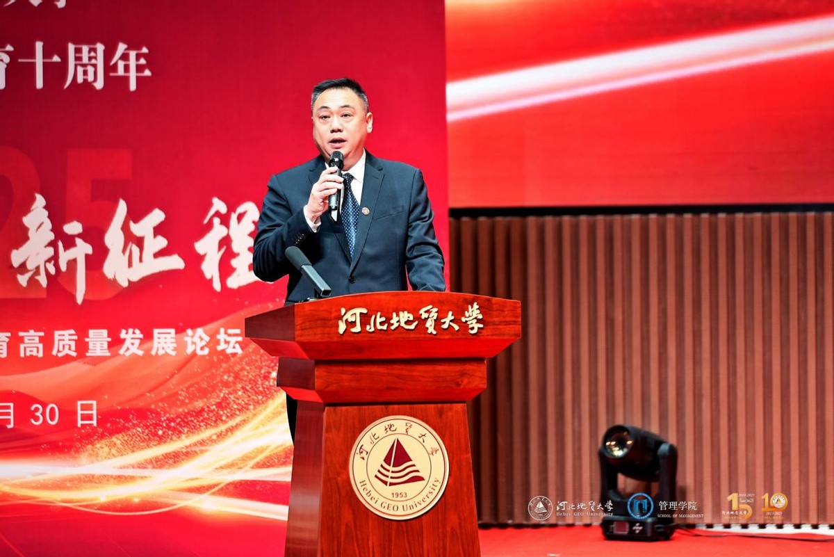 11月30日,河北地质大学管理学院以“MBA教育十五周年/MPAcc教育十周年:新起点新征程暨数智时代研究生教育高质量发展论坛”为主题,举办了一场融合历史回望、成果展示、学术研讨与情感联结的综合性盛会。活动汇聚学校领导、全国MBA教指委代表、兄弟院校同仁、行业专家、历届校友及在校师生近200人,共同回溯两项专业学位教育十五载(MBA)、十载(MPAcc)的奋进之路,凝聚“以数智赋能教育、以校友反哺育人”的共识,为新时代研究生教育高质量发展锚定方向。