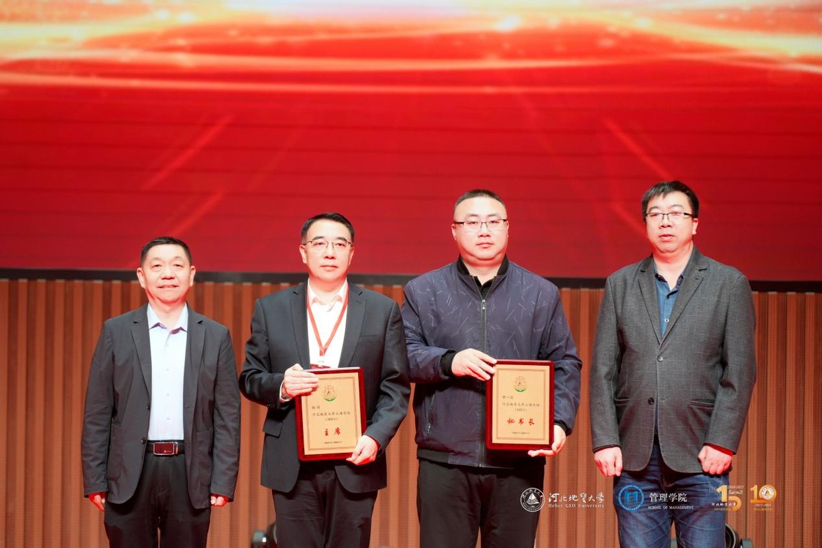 校友导师聘任仪式上河北地质大学管理学院院长白翠玲宣读了MBA校友导师聘任决定,白翠玲院长、周雪书记为11名校友导师颁发聘书,这些校友正式受聘为河北地质大学MBA校友导师。数智商道MBA校友奖学金颁发仪式上,18级MBA校友富中集团有限公司董事总经理智会杰为6名MBA学子颁发校友奖学金。校友导师的聘任和校友奖学金的颁发是校友反哺母校的新见证,MBA教育中心将以此次聘任会为契机,与校友凝心聚力携手共进,让校友资源成为MBA教育高质量发展的强大引擎,共同书写河北地质大学育人事业的新篇章。