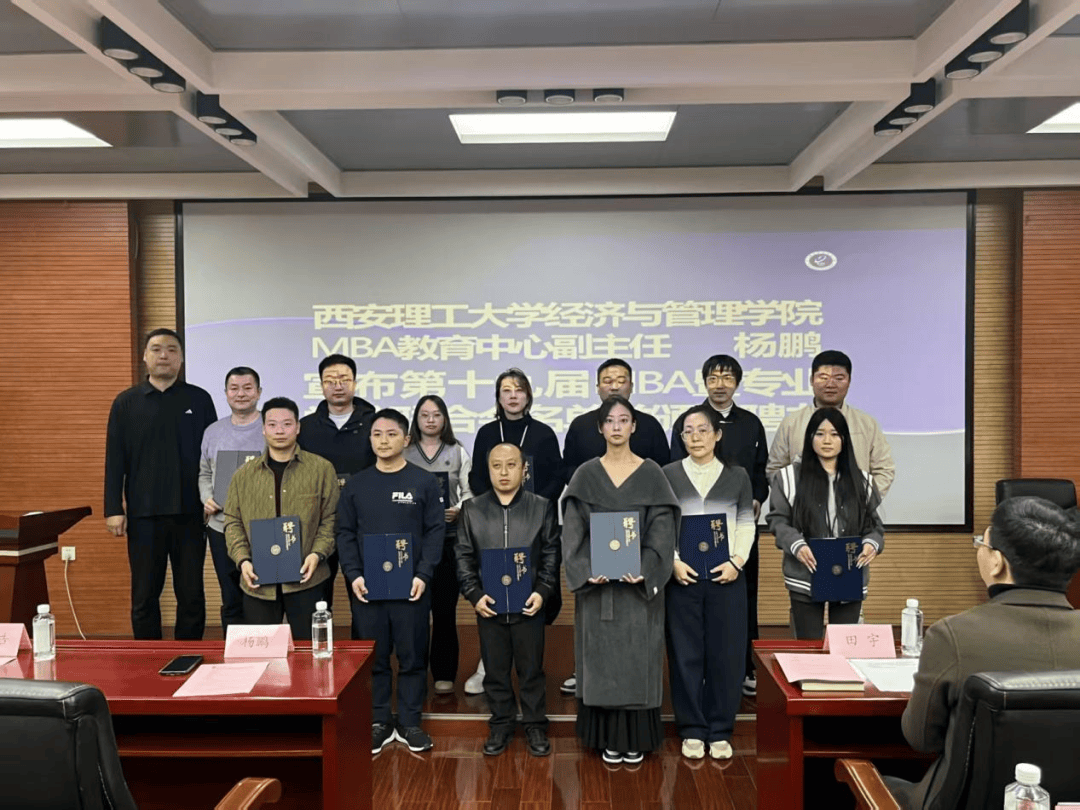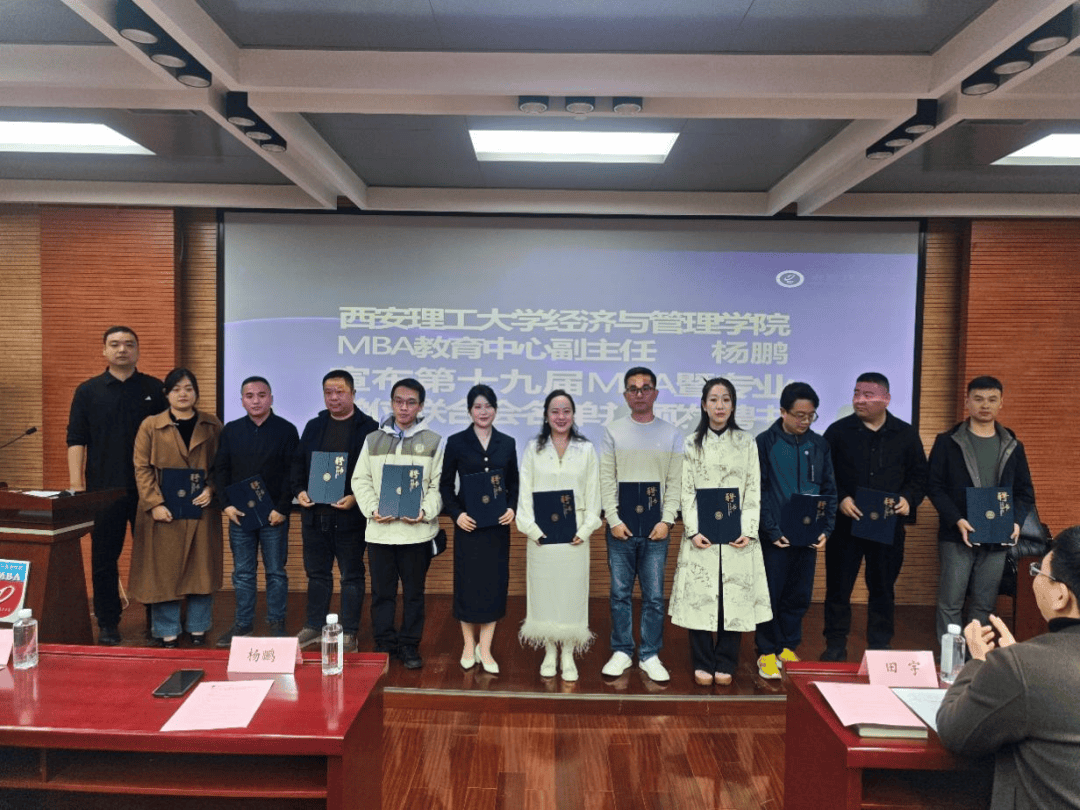 2025年11月16日,西安理工大学经济与管理学院第十九届MBA暨专业学位联合会换届大会在EMBA报告厅举行。MBA教育中心主任田宇、副主任杨鹏参加会议。本次大会嘉宾云集,中国MBA峰会理事会执行理事长李浩、中国MBA西北峰会理事会荣誉主席呼延博、理事长李伟辉、副理事长朱长江、监事长余康、秘书长刘琦,以及西北地区各兄弟院校MBA联合会代表齐聚一堂,共襄盛会。